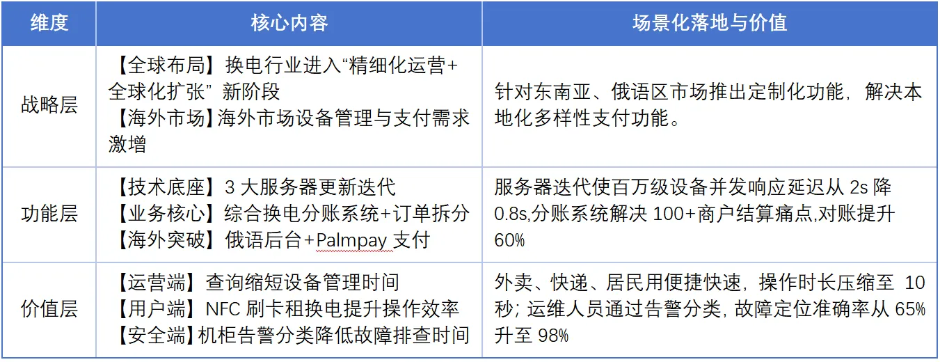 在2025年10月8日-28日期间, 围绕换电生态展开多维度更新迭代,以“国内效率深化+海外场景破局”为核心,通过技术、业务、体验等层面优化,全面夯实换电行业竞争力,本次优化升级迭代总结如下: