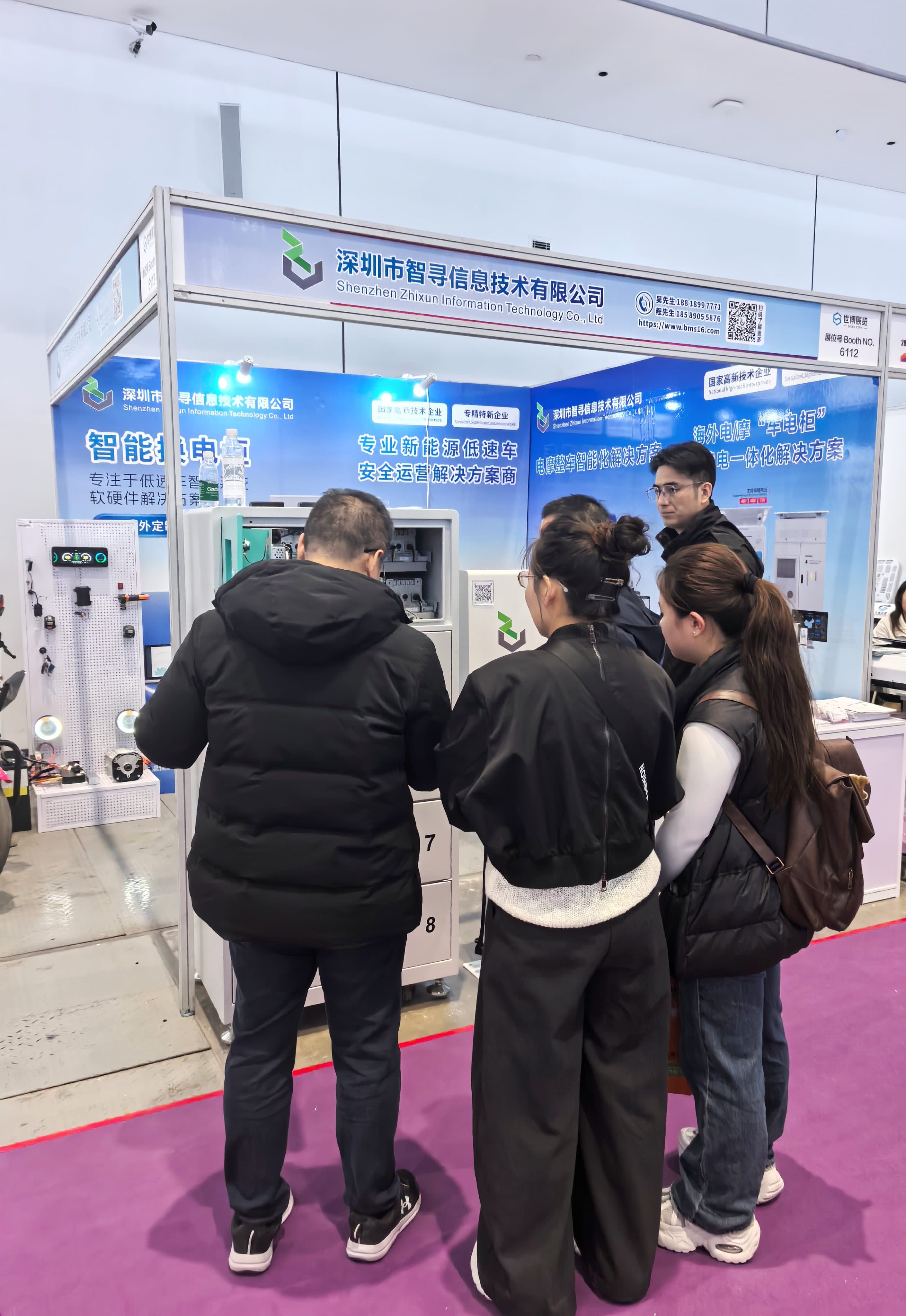 信息紧扣展会主题,聚焦低速车安全运营与智能化落地核心痛点,重点展出智能中控系统、北斗GPS双模定位、智能充换电柜及管理平台四大核心产品,通过现场驻场演示、实机操作体验等形式,让每一位莅临展位的观众直观感受产品的创新优势与实用价值,赢得了行业同仁的广泛关注与高度认可。